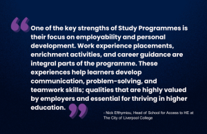 For learners aged 16–18, Study Programmes offer an excellent opportunity to build confidence, develop essential skills, and prepare for the next stage of education. At The City of Liverpool College, these programmes combine academic learning with practical experience, creating a well-rounded approach that supports progression into higher-level courses such as Access to HE Diplomas.